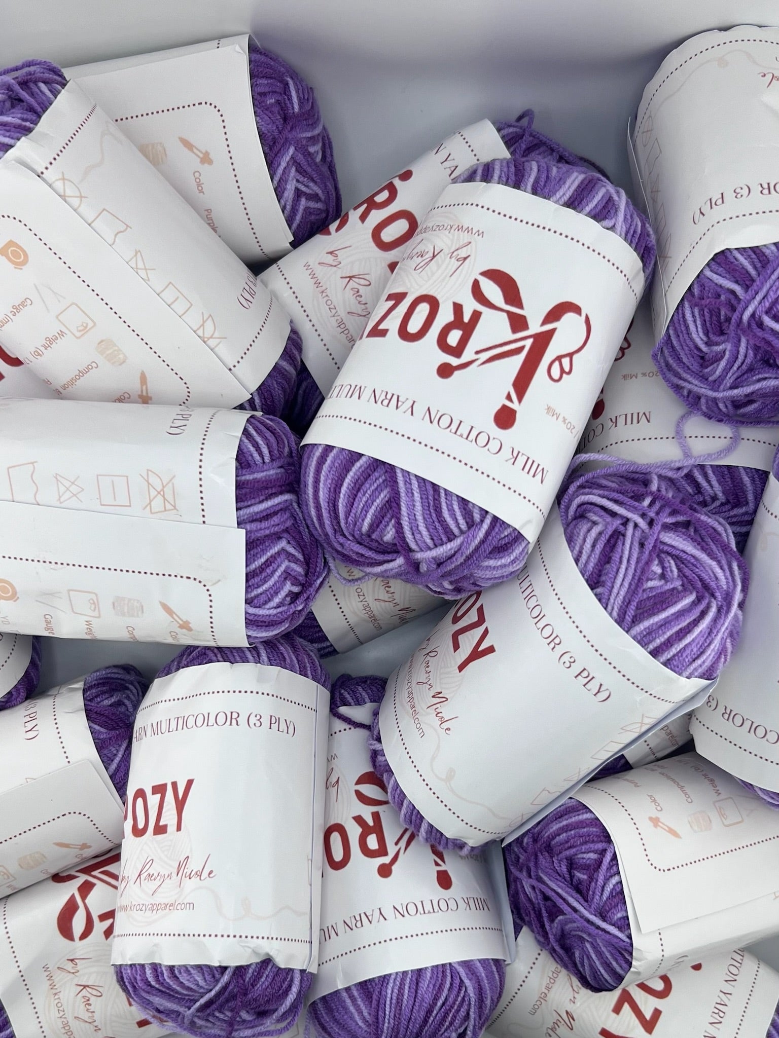 A soothing array of purple shades in thin milk cotton yarn, reminiscent of the calming energy of amethyst crystals. This soft and lightweight yarn glides effortlessly through your fingers, making it perfect for creating airy garments, shawls, or accessories that embody a sense of peace and elegance. Ideal for projects that celebrate beauty in simplicity.
