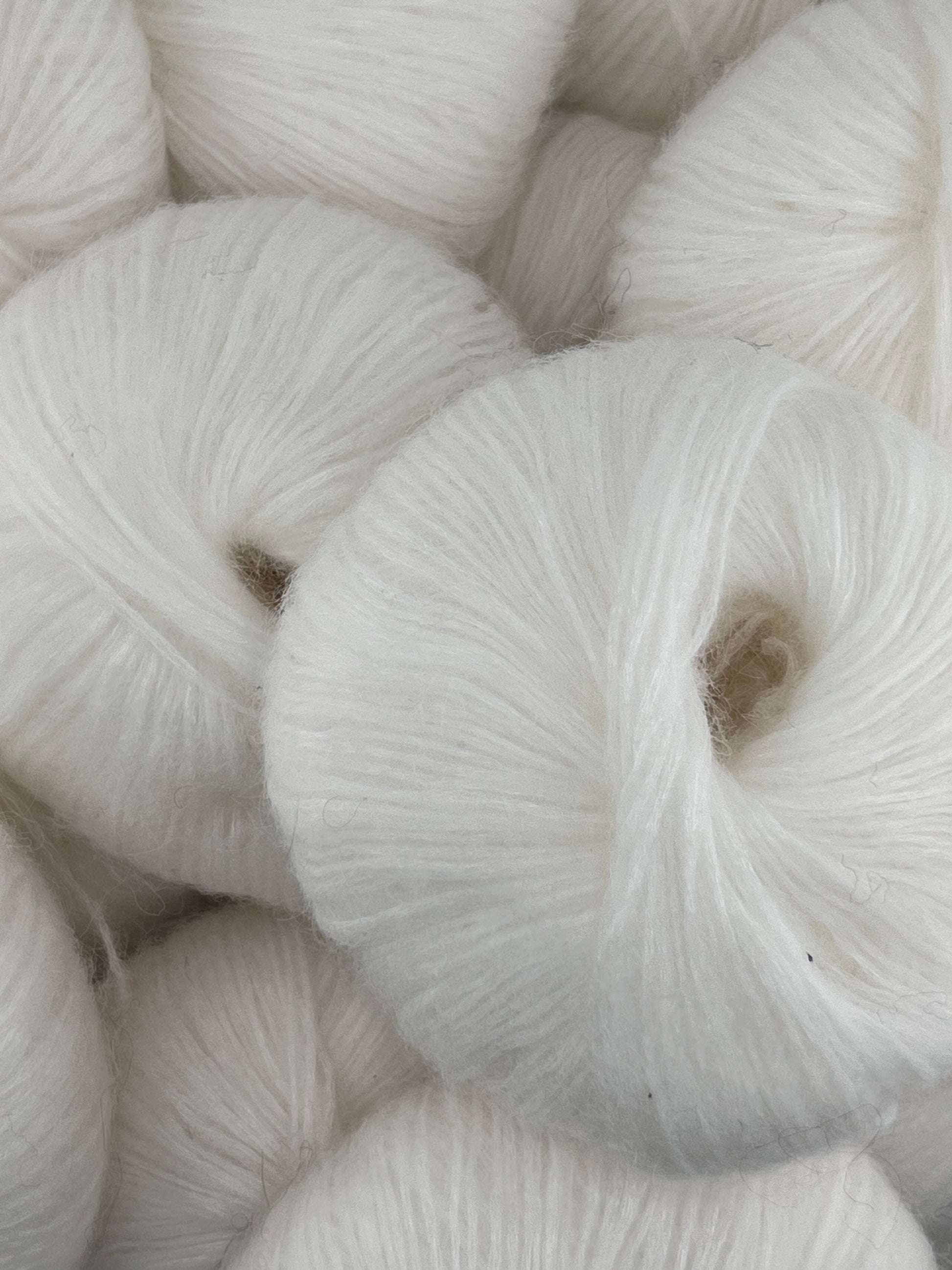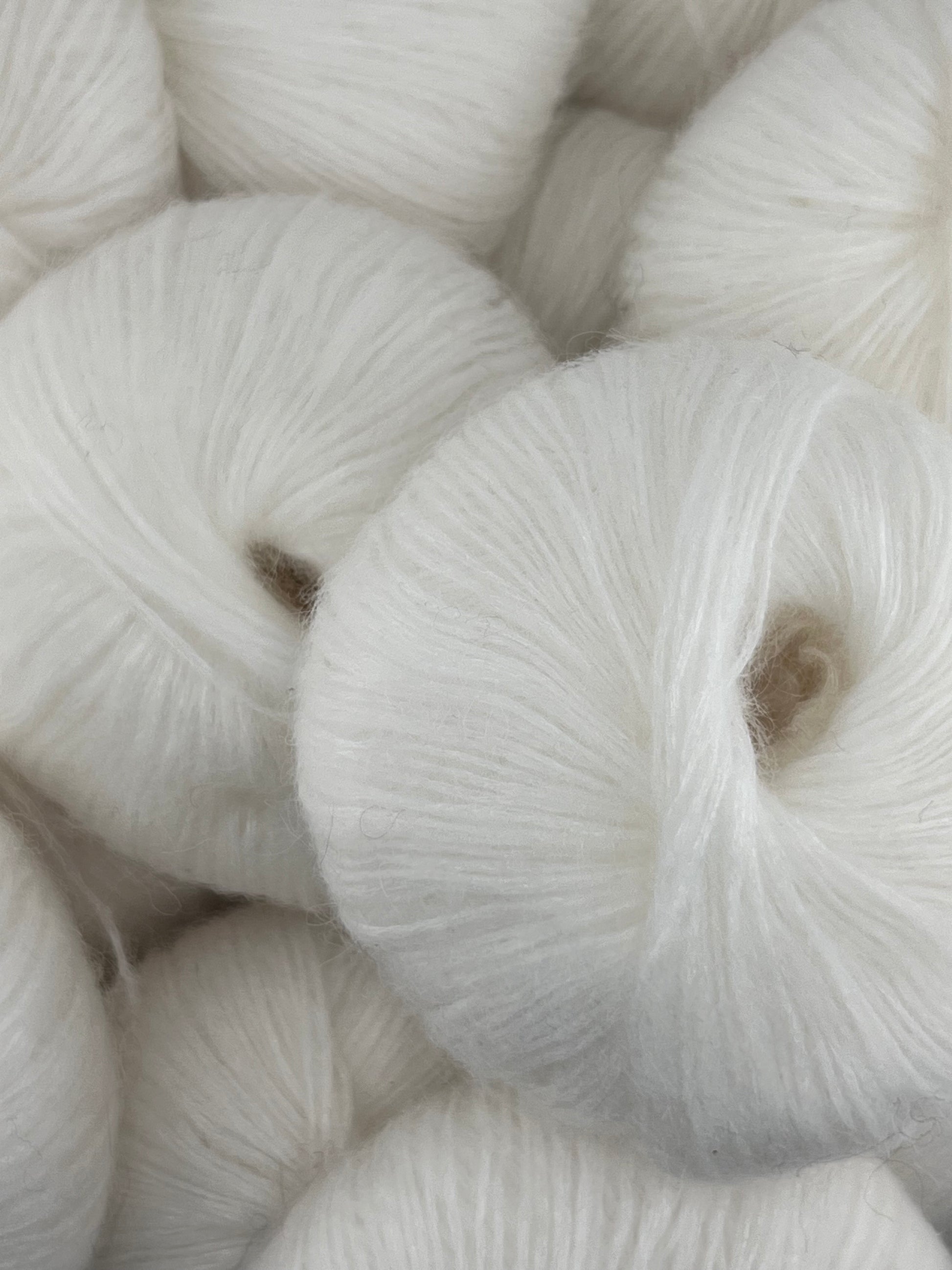 Evokes the soft, pure, and luxurious qualities of the yarn, reminiscent of the serene beauty of snowy landscapes.