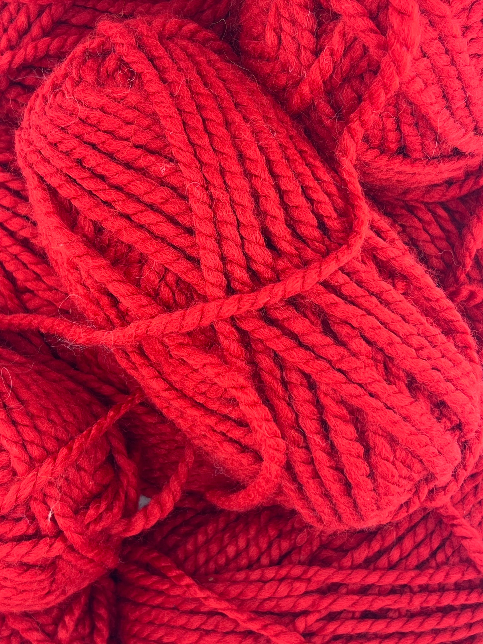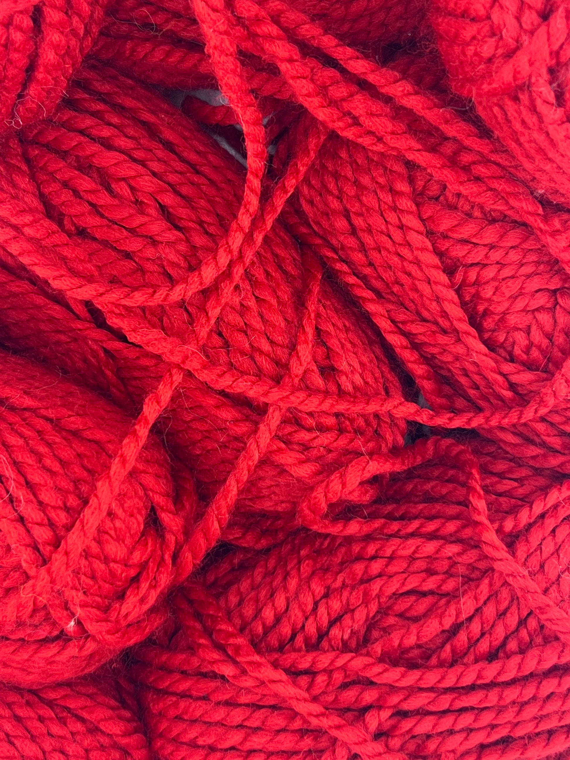 This bright red wool yarn radiates warmth and passion. Its rich color adds energy and intensity to any project.