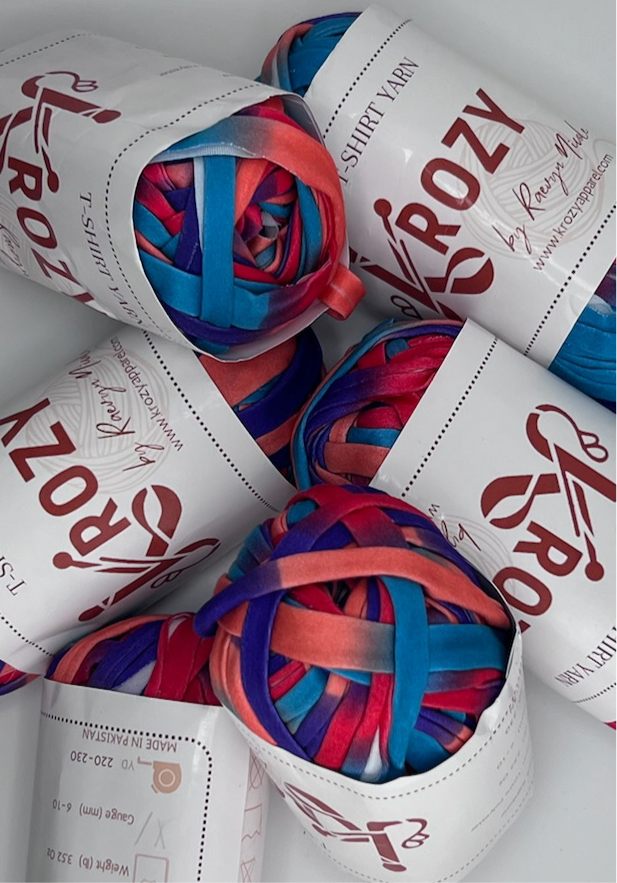 A versatile T-shirt yarn in a blend of blue, grey, and white, evoking the ebb and flow of ocean tides. Soft, stretchy, and perfect for creating chunky, stylish designs with a casual, coastal vibe. Ideal for home decor, bags, and accessories that need both comfort and durability.