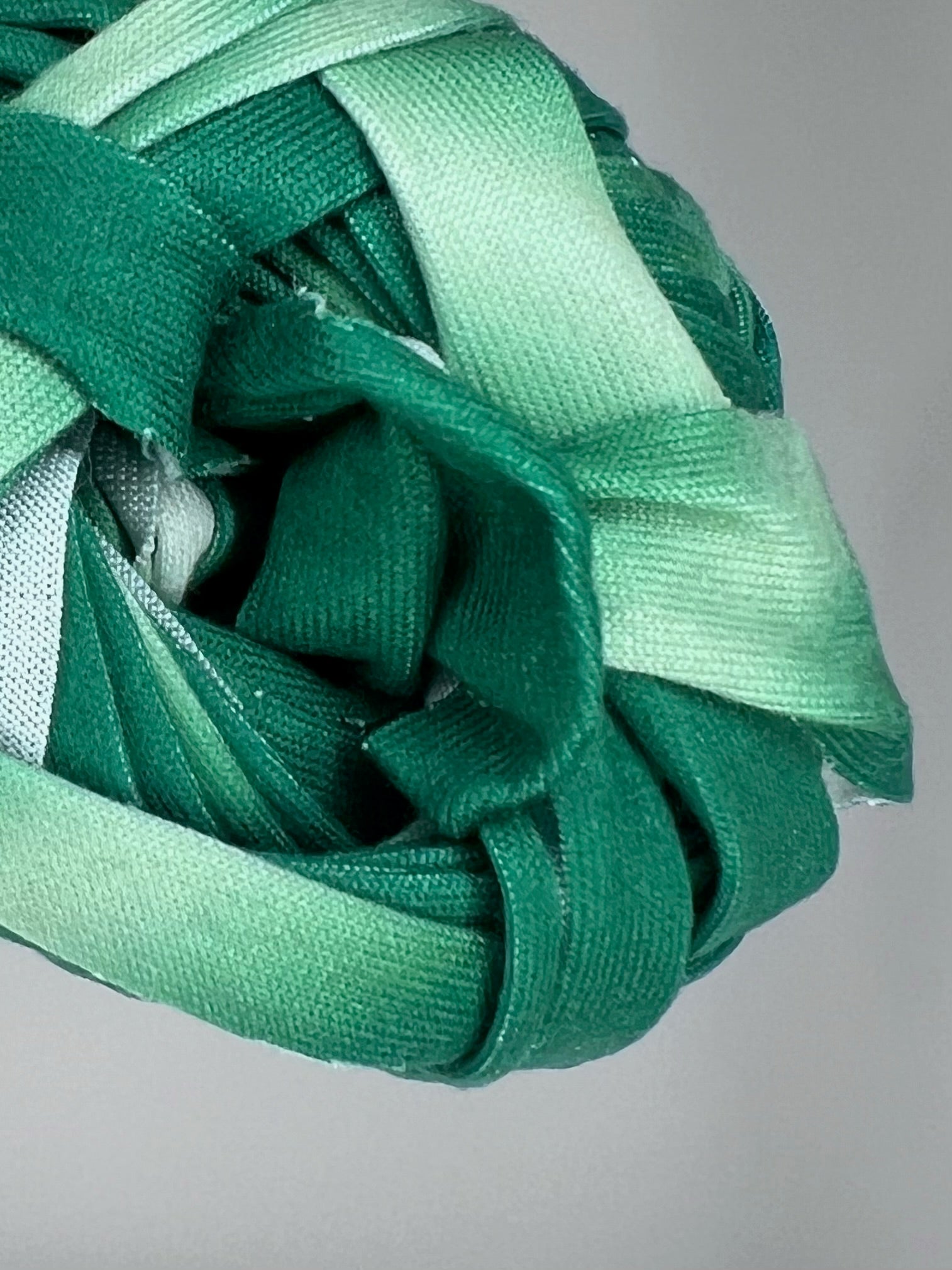 An ombre T-shirt yarn that transitions beautifully through shades of green, evoking the deep, tranquil hues of a forest canopy. Soft, stretchy, and durable, this yarn is perfect for creating bold, nature-inspired designs. Ideal for bags, home decor, or statement accessories with a refreshing, earthy vibe.