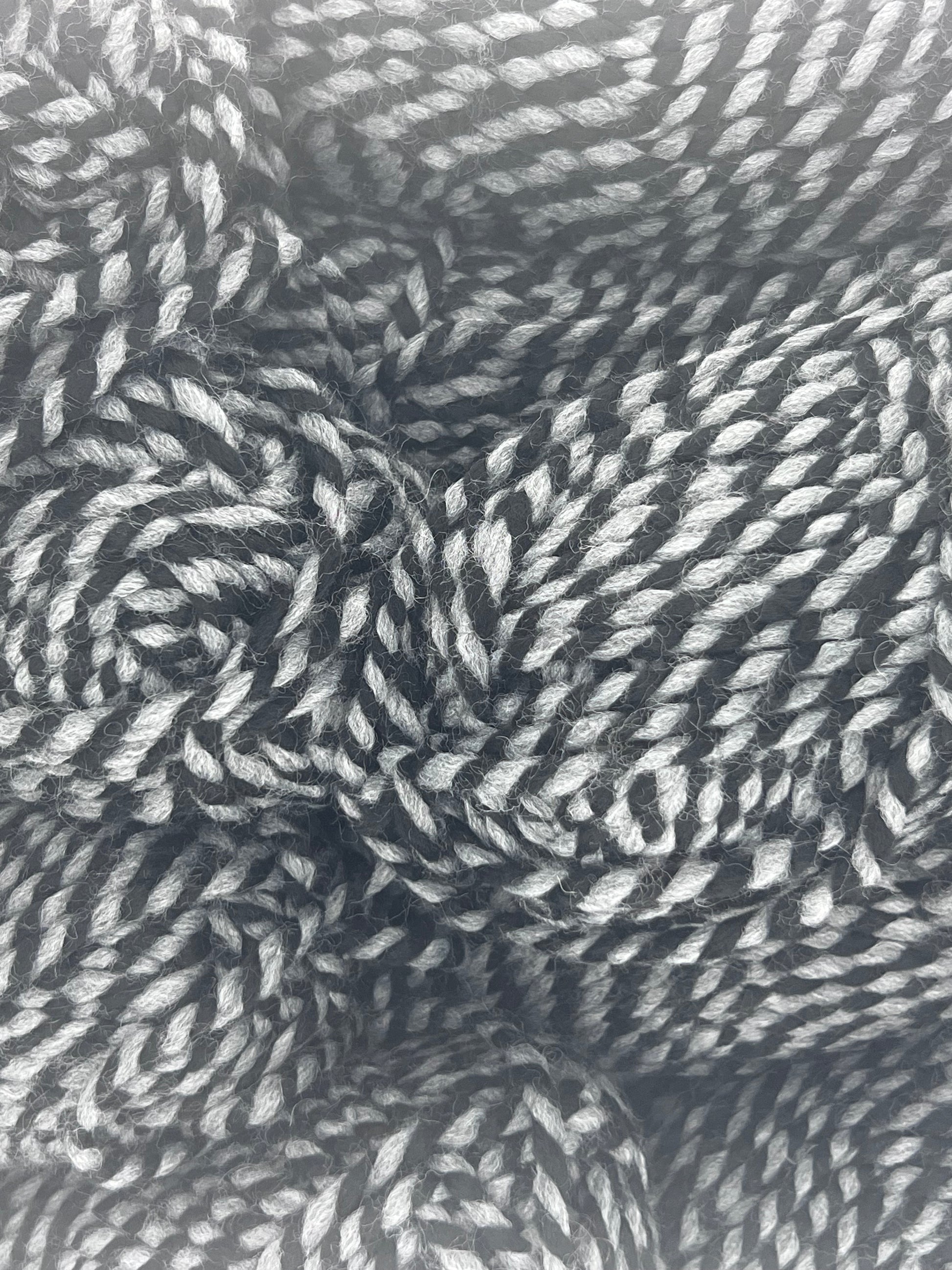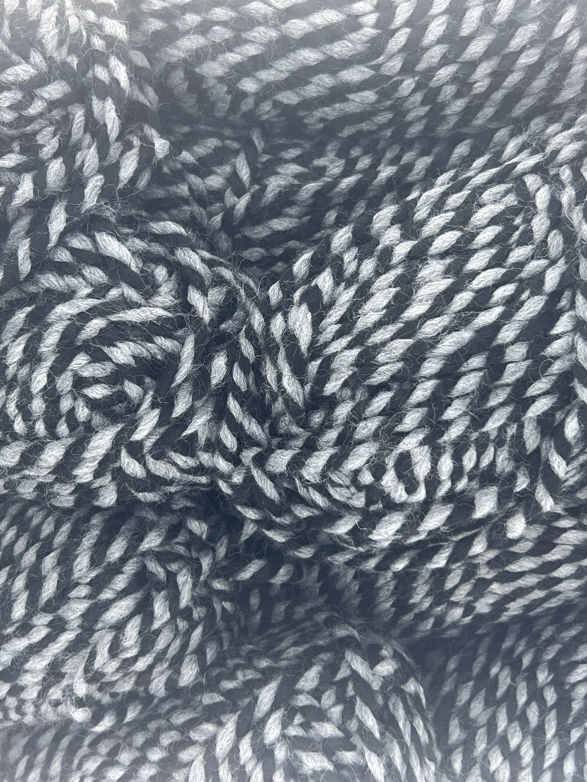 Our dark grey and black twisted wool yarn is soft, durable, and perfect for creating stylish and cozy projects. Adds a touch of elegance and depth to any design.