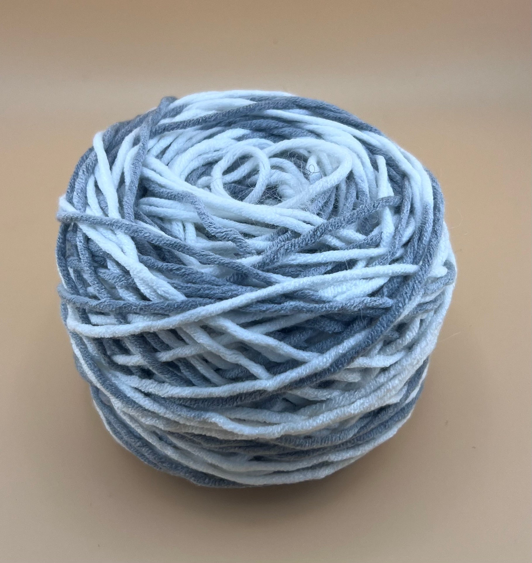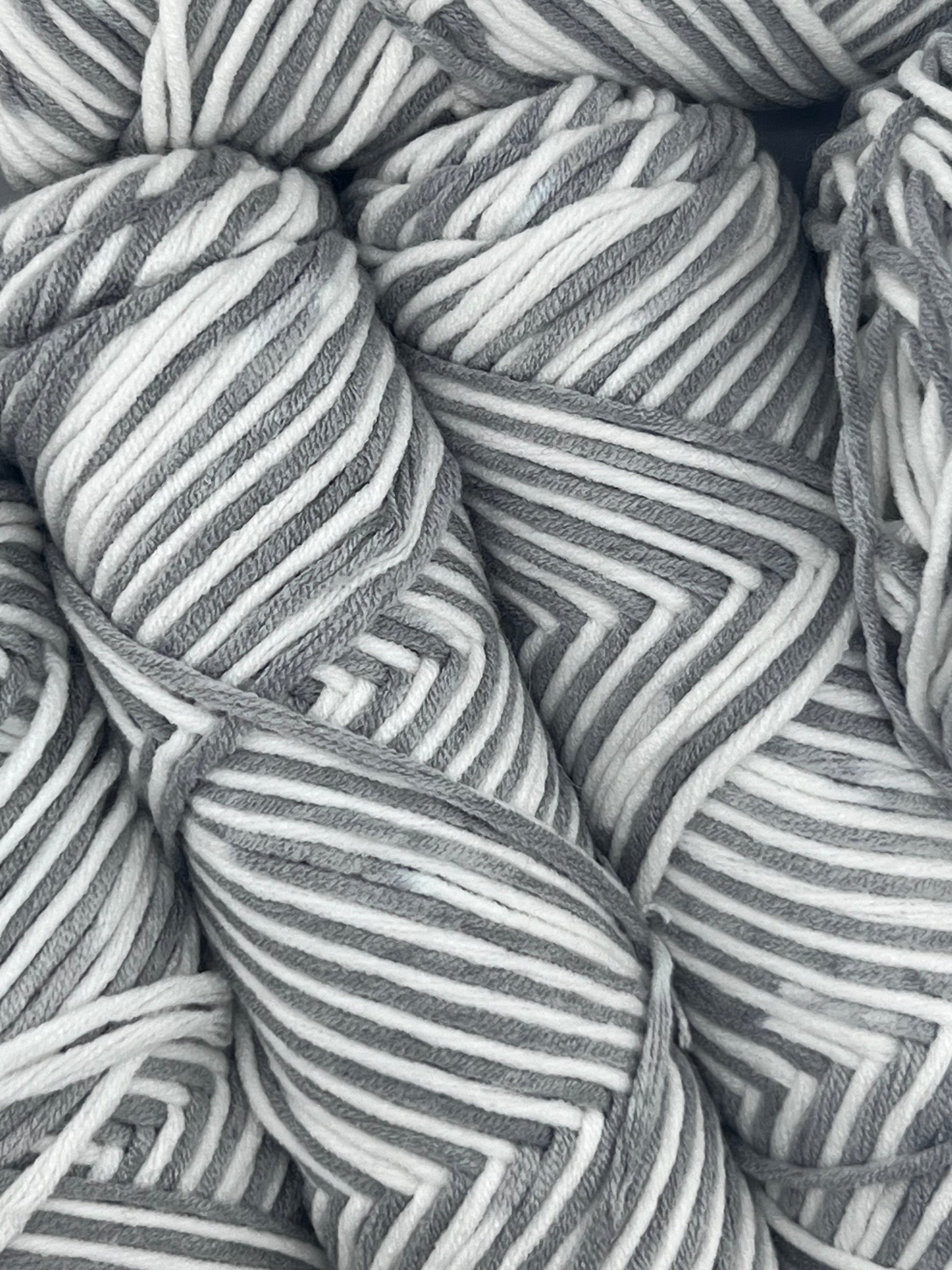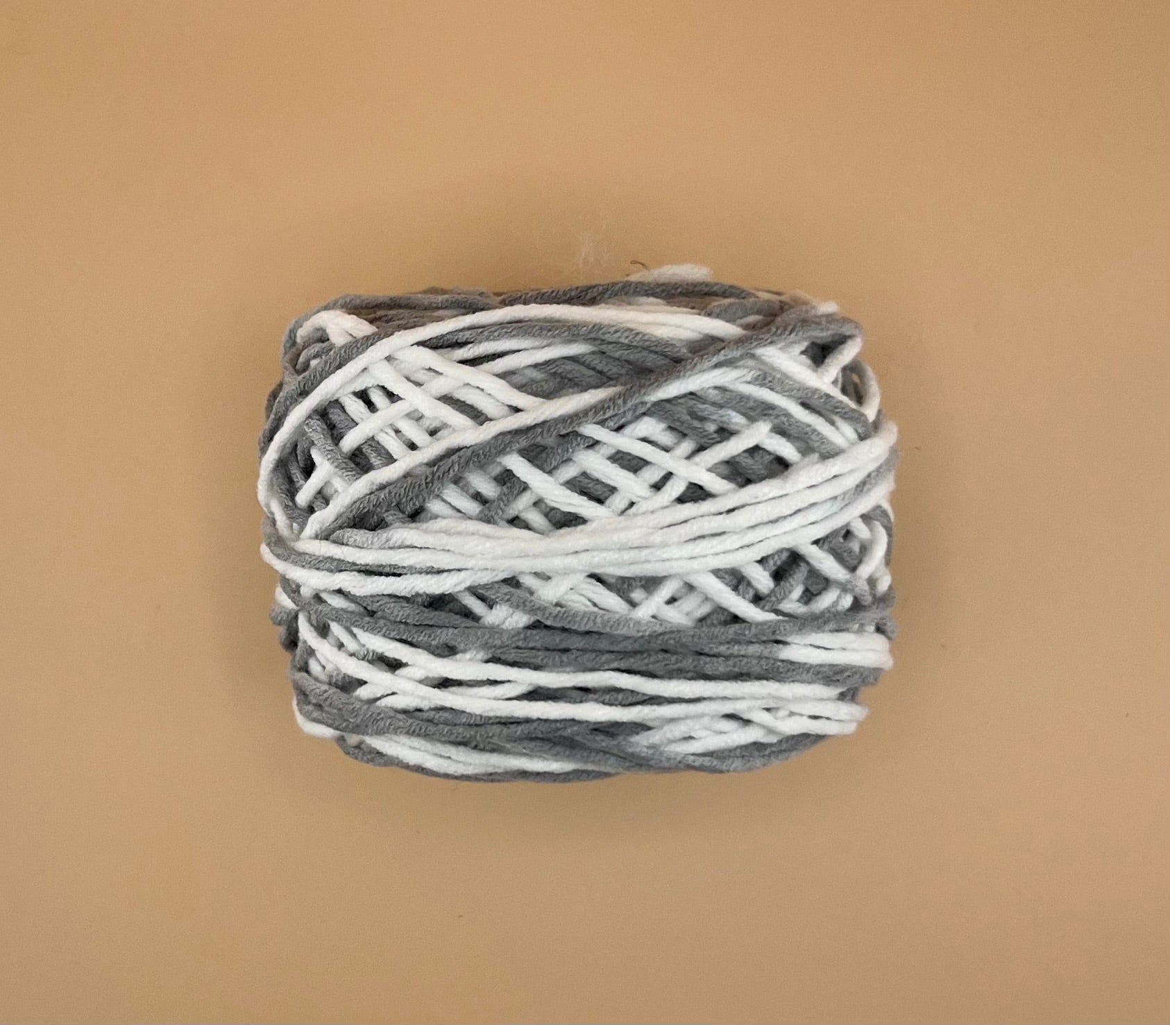 Our extra soft grey and white wool yarn offers a luxurious feel and classic color blend.