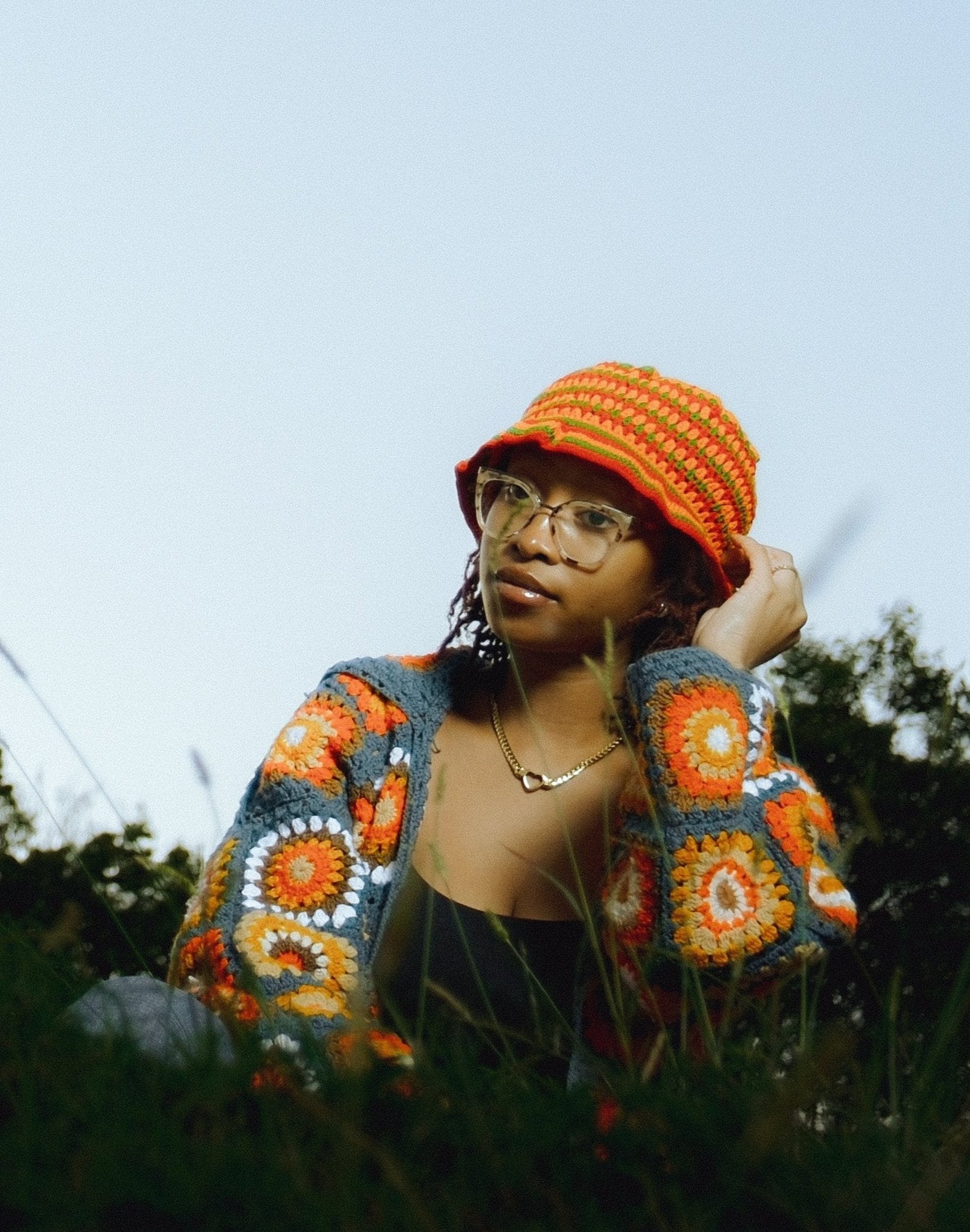 features a unique striped pattern that elegantly flows in a teardrop design, finished with delicate ruffles at the brim for a playful yet stylish touch. This eye-catching crochet hat comes in two bold color variations